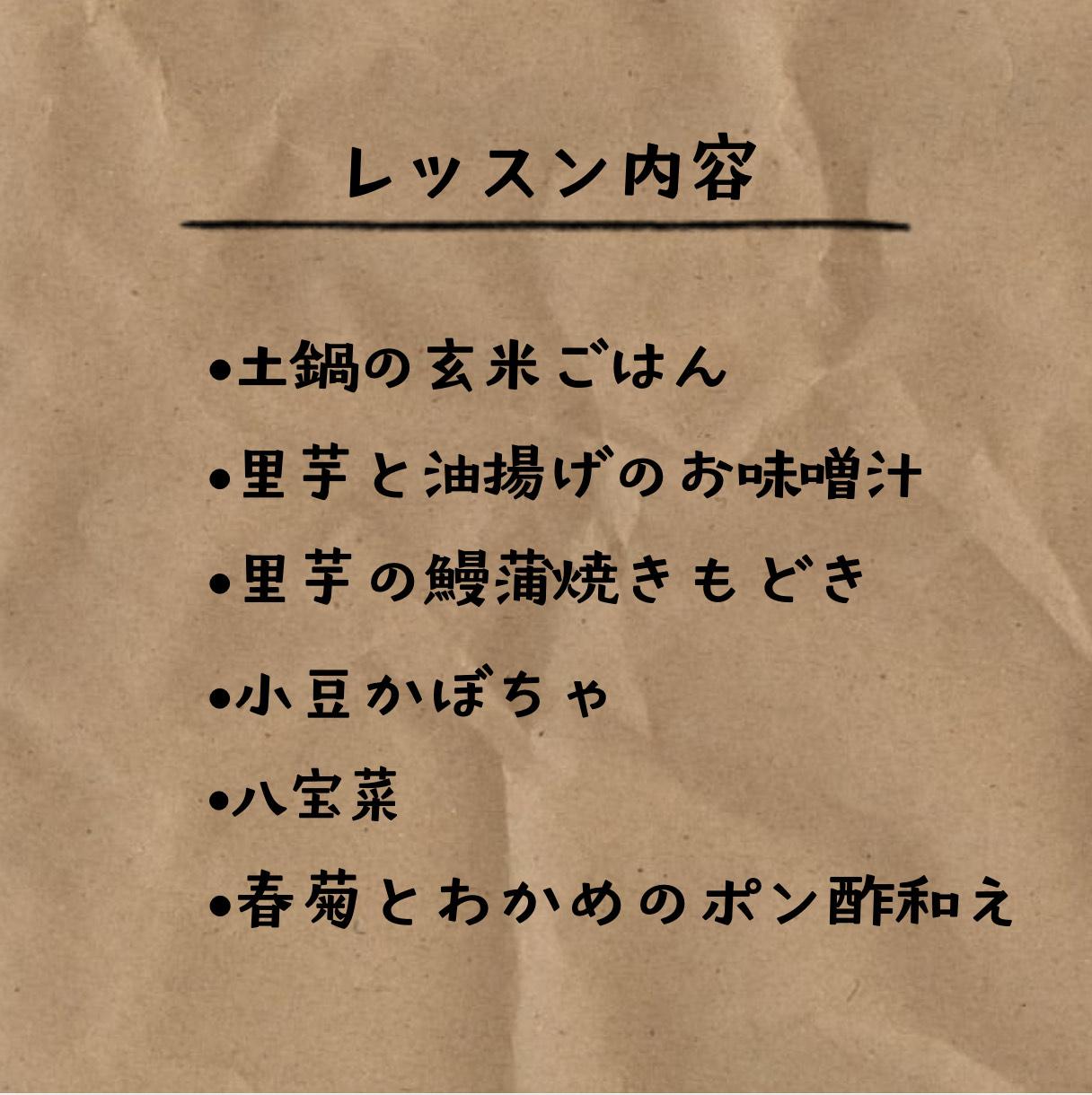 | 2024年4月7日 | 土鍋と旬の料理教室【春】 |